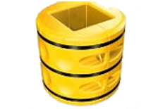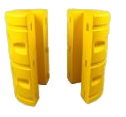 Column protector, saving interior building columns by surrounding them with a cushion of air. This protector is very easy to install, without using any tools, and is extremely effective at column damage prevention. It is available in a number of sizes to fit most every column. This column protector is highly visible in its standard safety yellow color, preventing forklift collisions. When hit, Column Sentry flexes, protecting the column, the forklift, and the forklift operator. The protector is molded of low-density polyethylene, making it tough while keeping it maintenance free.