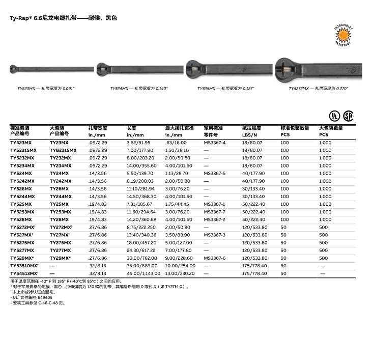 Ty-Rap® 6.6尼龙电缆扎带——耐候、黑色