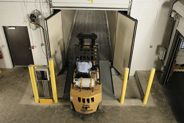 8.装卸平台台面有最大4"(100mm)的变形,以补偿不水平的车厢底部。后端铰链稳固连接,保持与月台齐平(不高于月台平面)。