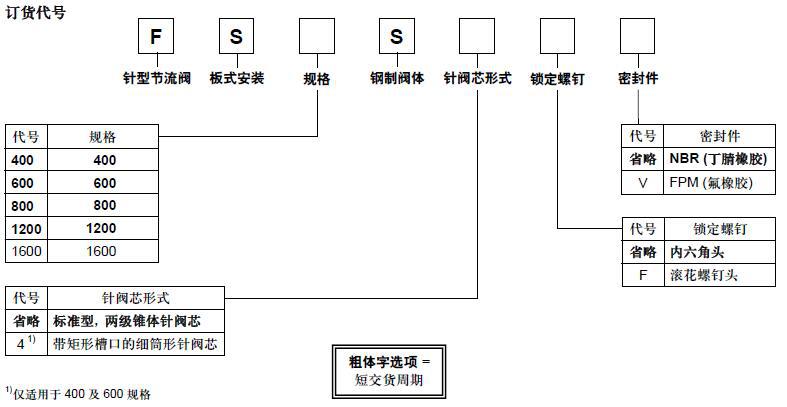 FS 系列管式单向节流阀带有微调功能,可实现在规定流向上的流量调节,而在相反流向上液流可自由流动。该系列阀的针阀芯带有两级锥体,在调节旋柄的前3 圈内,可对小流量作非常精确的调节,后3 圈则为常规的流量调节,直至阀口完全开启。阀的调定位置可用锁定螺钉固定。