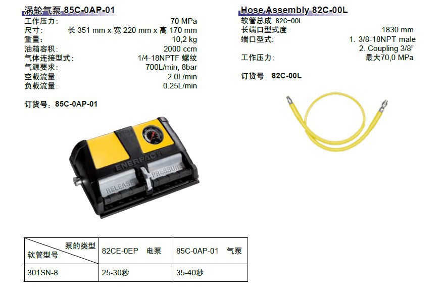 • 扣压时间:电动泵为20秒