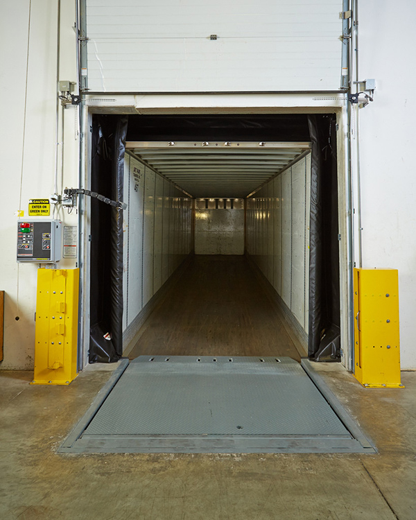 顶部门帘两端配有耐磨百页片,顶部门帘高度须低于正常装卸货中最低货车高度76mm。