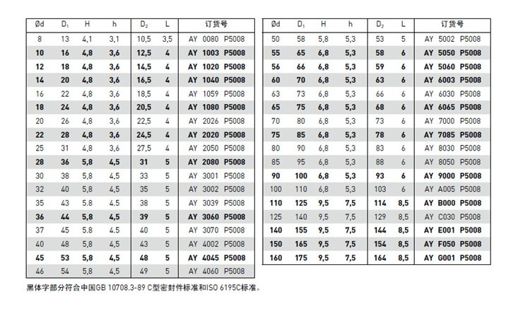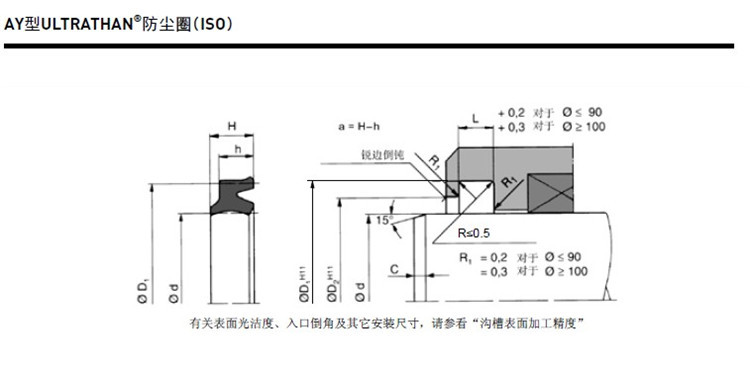 当使用PTFE活塞杆密封件时,本公司推荐用AY型ULTRATHAN®双唇防尘圈。