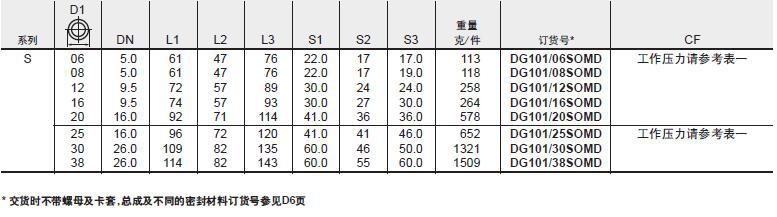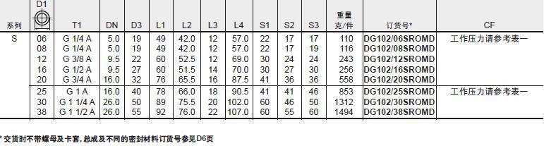接头系列:LL超轻型(压力100bar)、L轻型(160-500bar)、S重型(315-800bar)