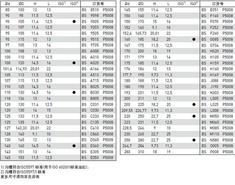 主要用于重载行走机械和静压中的活塞杆和柱塞的密封,沟槽和直径尺寸分别符合ISO5597/I和ISO3320国际标准的要求。