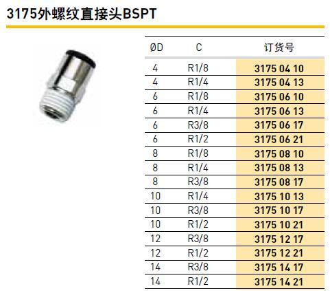 批发正品legris乐可利3175外螺纹直通快插接头BSPT 31750813现货销售