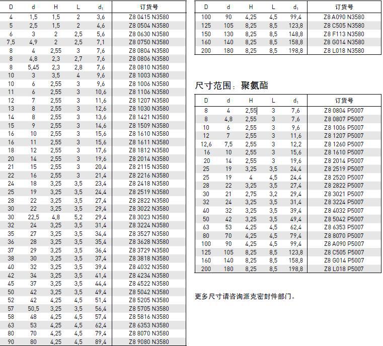 Z8型气缸密封是气缸活塞用和阀用的一种唇形密封件。它要求小的沟槽尺寸并可与本公司的Z4型气动U形圈换。Z8型标准系列相应于符合ISO 3320以及CETOP RP 52P、RP 43P、RP 53P标准的缸径。