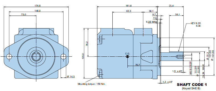 低转速(600 rpm,车用型泵为400 rpm)、低压力及高粘度(860 cSt,车用型泵为2000 cSt)运行能力 - 使T6 系列叶片泵能适应低温工况,功耗小且无卡滞危险;