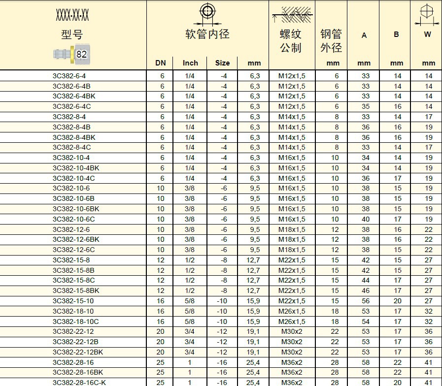 派克软管接头的材料包括碳钢、铜以及不锈钢,尺寸范围从3/16”至3”。另外,派克软管接头还有多种尾端连接形式,如DIN,ORFS,BSP,SAE,法兰等。
