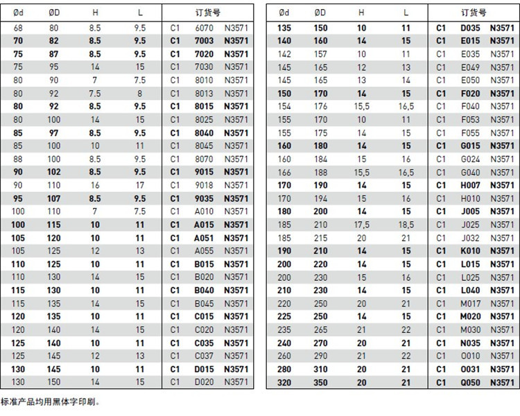 由于密封接触面小,摩擦力小,并且由于特殊设计,因而不需要支撑挡圈。C1也可应用于有润滑的压缩空气介质。