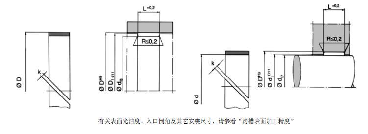 在杆径或缸径小于50mm时,推荐使用开式沟槽。对采用有色金属和轻金属的活塞,请使用F2型导向带(参考气动密封件样本)。