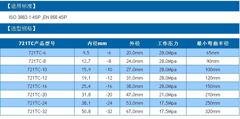 石油基液压油和水乙二醇液压油,润滑油,空气和水,用于1.7Mpa以上空气,软管需要针刺。具体化学兼容性见 《化学性兼容性表》。