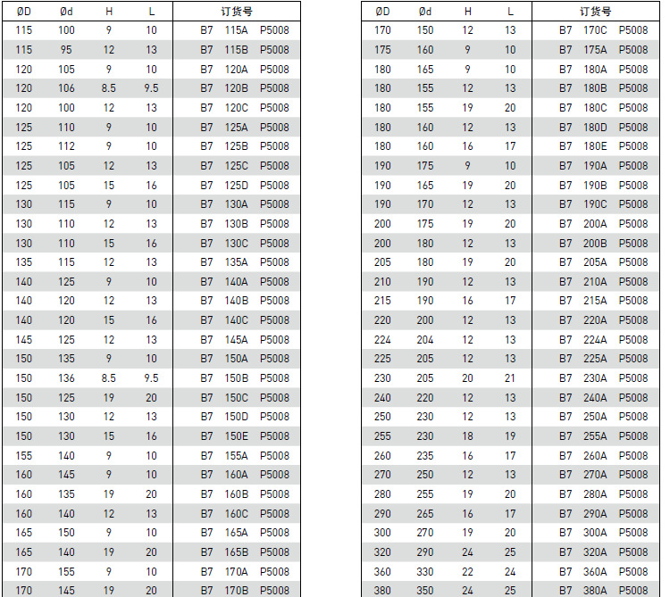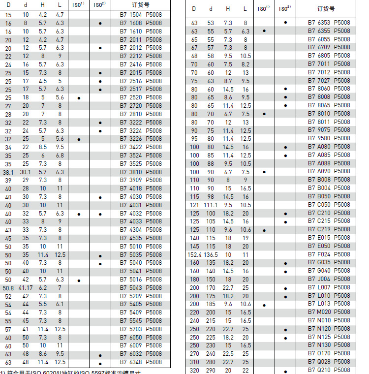 B7 型 ULTRATHAN®活塞密封件(ISO)订货号