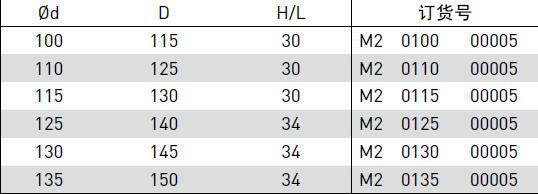 M2型活塞杆密封件有5个V形密封圈(3个织物增强密封,2个橡胶密封)、1个支撑圈和1个挡圈。挡圈只用织物制成。在尺寸与此样本中所述不同的情况下,请根据本公司的MO密封件来选择一种密封的组合。